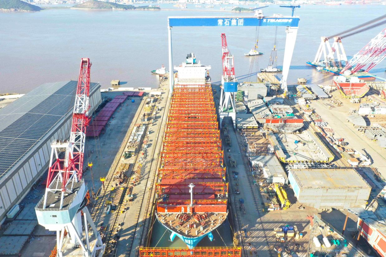 常石造船株式會社(總部:廣島縣福山市,法人代表:董事長兼社長執行董事 奧村幸生)在其中國造船基地——常石集團(舟山)造船有限公司(以下簡稱TZS)建造的首艘甲醇雙燃料5,900 TEU集裝箱船,該船已于2025年8月27日下水,預計2026年2月竣工。
